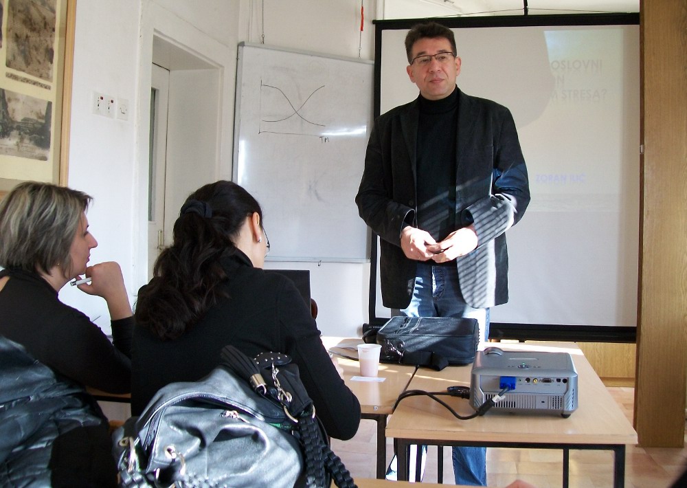 “Posao i stres” bila je tema subotnjeg predavanja psihijatra dr Zorana Ilića, u okviru treninga iz oblasti poslovnog komuniciranja koji, za potrebe službenika Srpske banke, realizuje PR agencija „Pragma“.